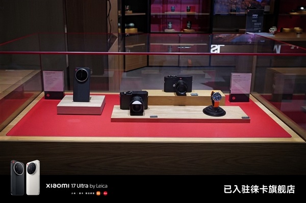从官方晒图可以看到,小米17 Ultra徕卡版在店铺内与徕卡M EV1相机、Q3相机等产品摆在同一个展示柜,足以说明这次双方合作的深度。