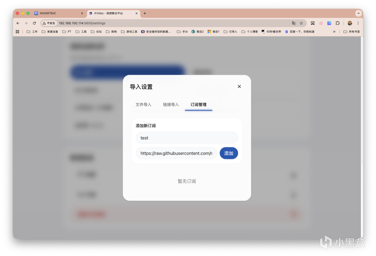 在「订阅管理」中,填写订阅名称,订阅链接填写暗号所得内容,并点击「添加」即可。