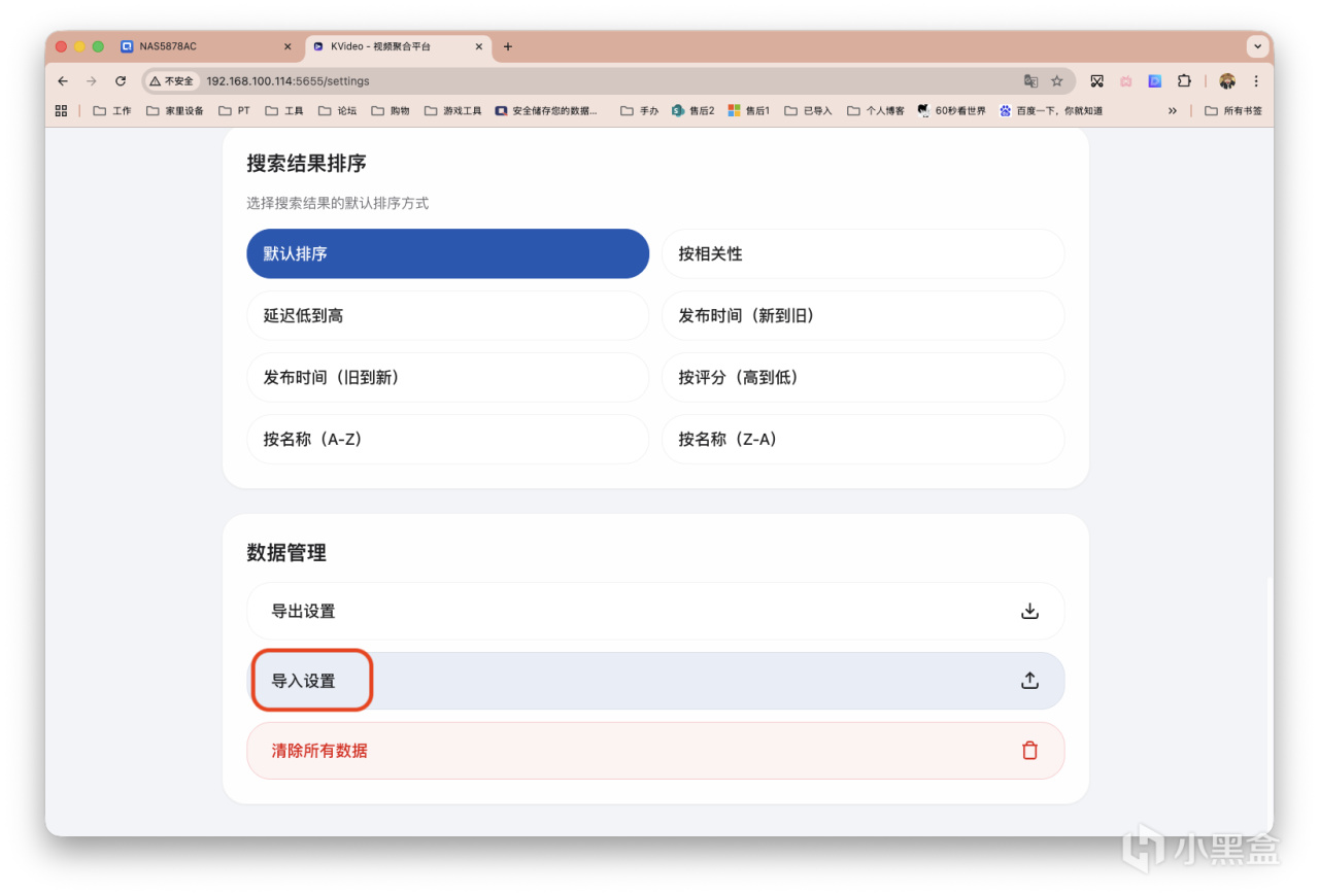 此时我们点击右上角的齿轮进行配置。划到底,点击「导入设置」。