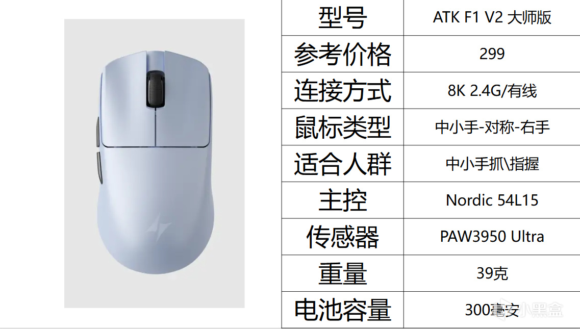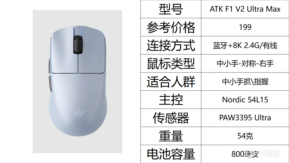 这款鼠标相对于他的Ultra MAX版本轻了很多,轻了足足有15克。虽然只有300毫安的电池,但他的硬件又弥补了这一点,1K回报率的情况下也能做到250+的续航。实际我们并不知道是他的固件调教还是54L15的实力同样的,他也升级了ATK自己定制的光微动。