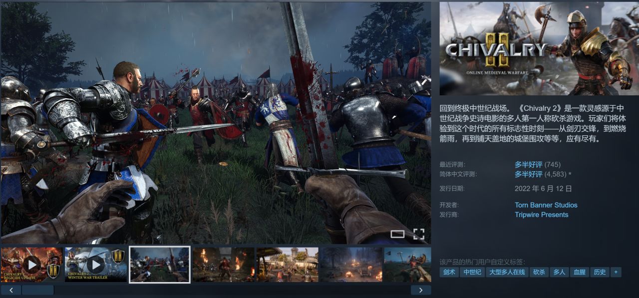 回到终极中世纪战场。 《Chivalry 2》是一款灵感源于中世纪战争史诗电影的多人第一人称砍杀游戏。玩家们将体验到这个时代的所有标志性时刻——从剑刃交锋,到燃烧箭雨,再到铺天盖地的城堡围攻等等,应有尽有。