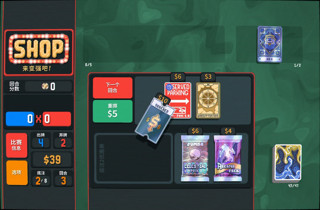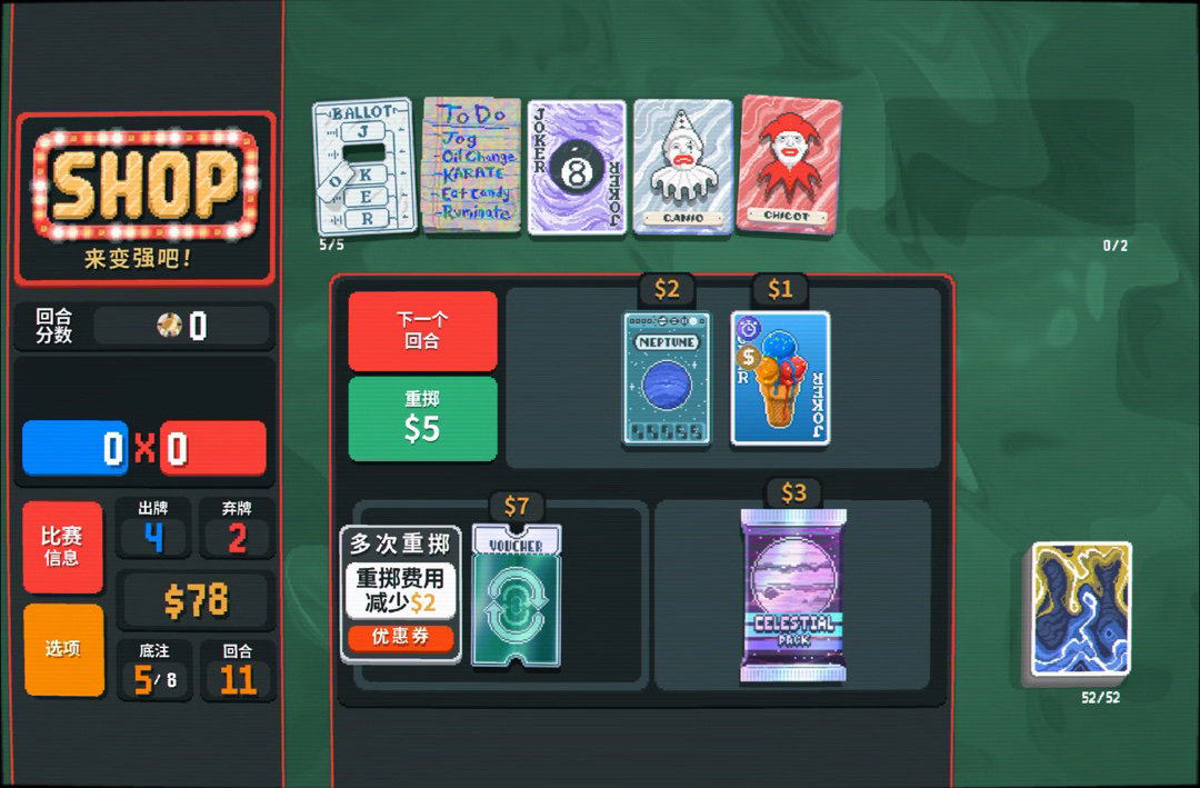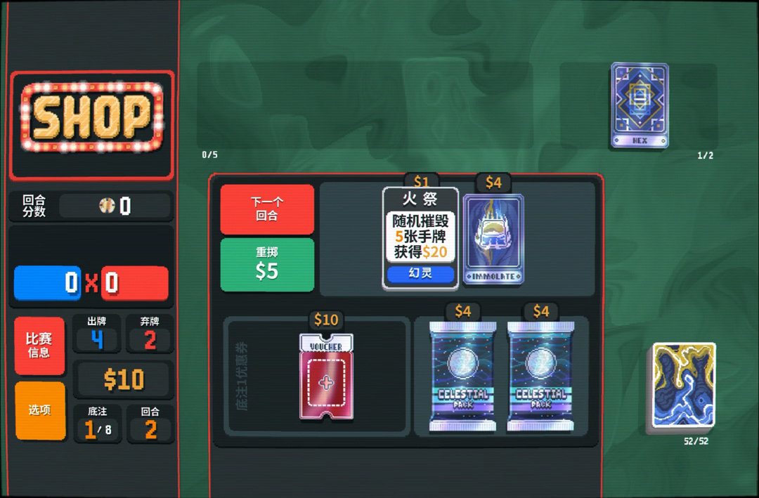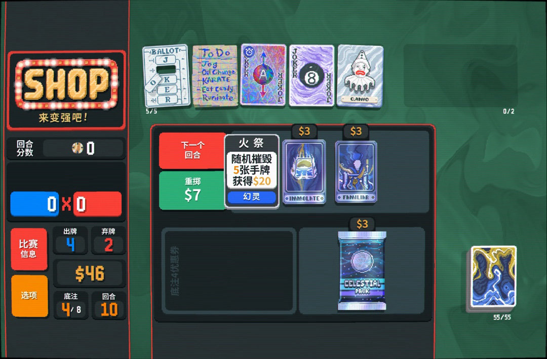 商店直接給了火祭,這更好了,刪了牌打順子底氣更足,還能給錢💰