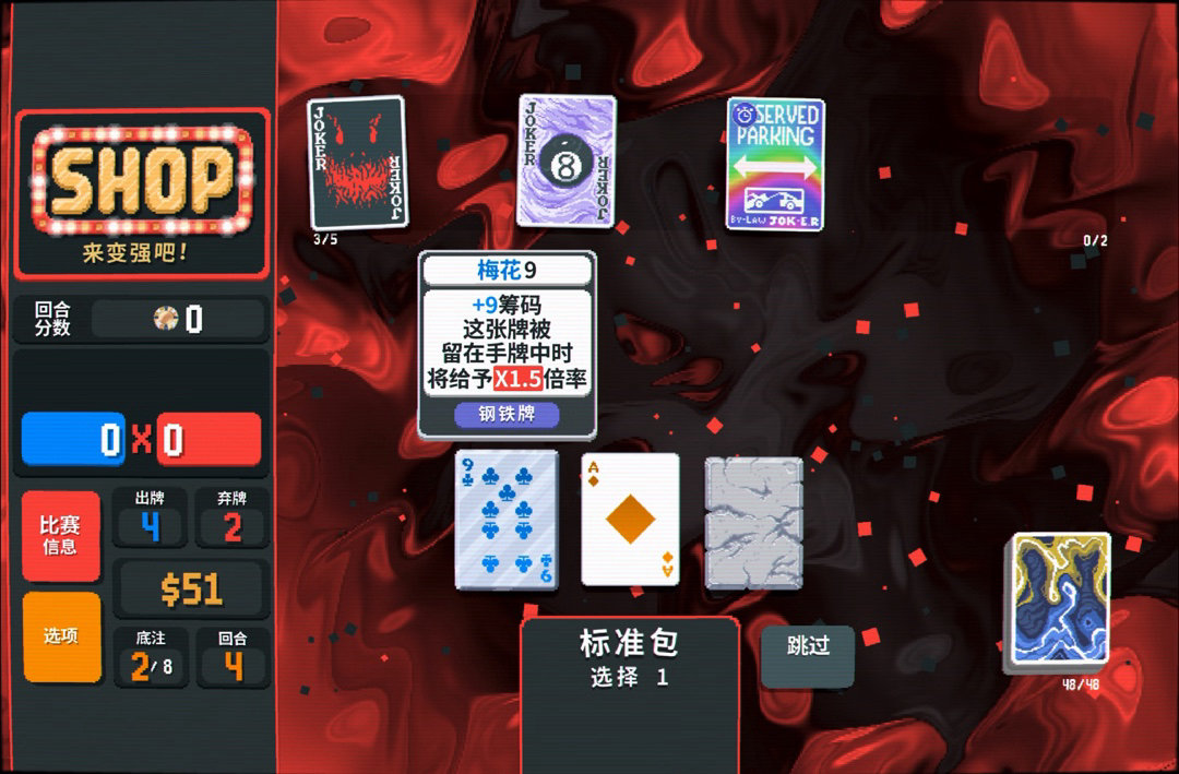 標準包也開一下,鋼鐵牌可以拿,順子配鋼鐵牌可以打數值爆發