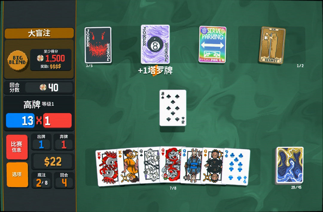 爲了儘可能多觸發8獲得塔羅牌,考慮拿一張咒語,增加數字牌看看運氣,好在多給了兩張8