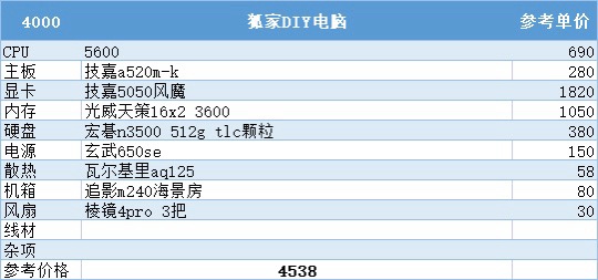 四、4000元预算