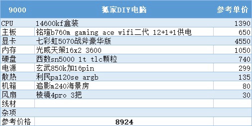 九、9000元预算
