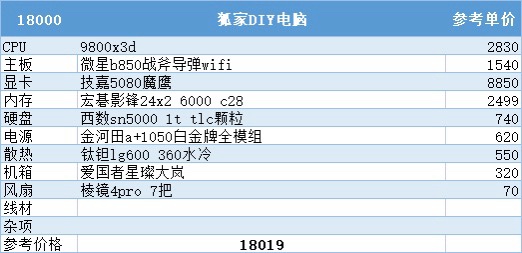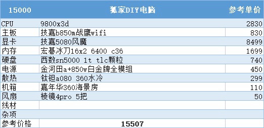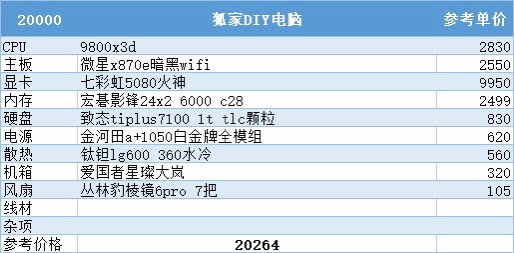 到了这个预算终于能上到983加5080的组合了,无论是网游还是3a都拉满了,这套足以满足99%的玩家的需求了,再往上就是为自己喜欢的高端配件买单了