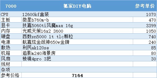 七、7000元预算