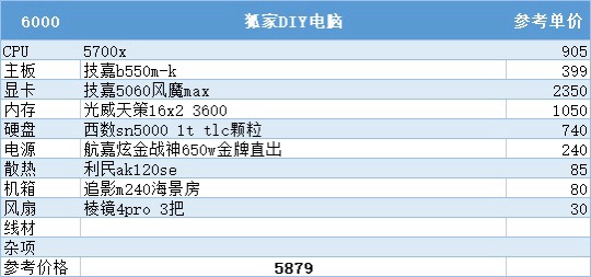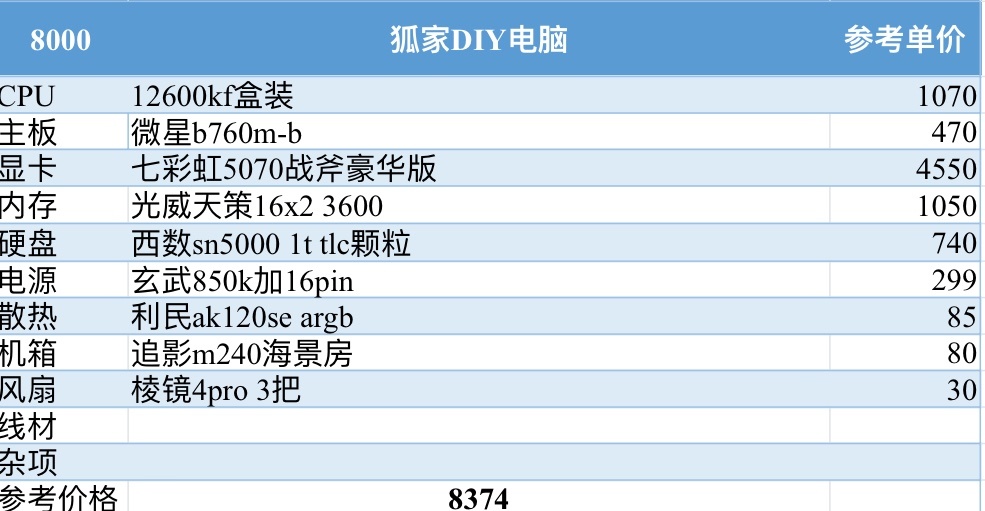 这个预算我也准备了两套,一套是性价比更高的au,5700x性能和12600kf一样,这套足以满足2k畅玩基本所有游戏的需求了