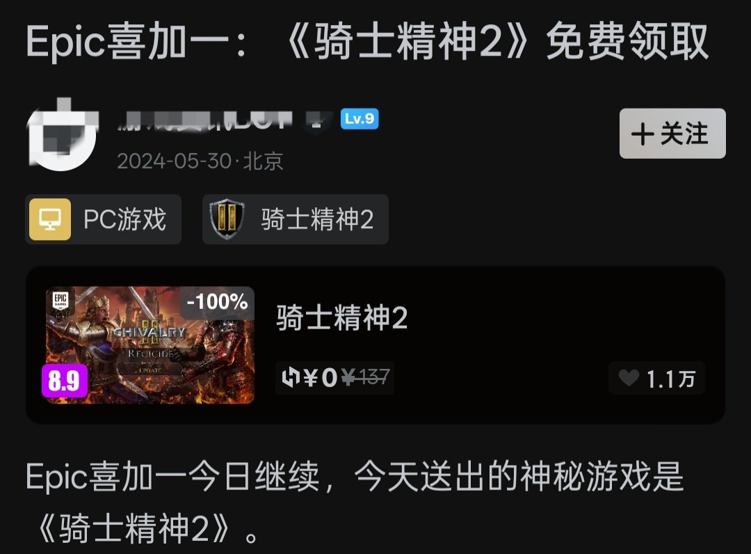 在2024年5月30日,Epic商城曾送出喜加一游戏《骑士精神2》
