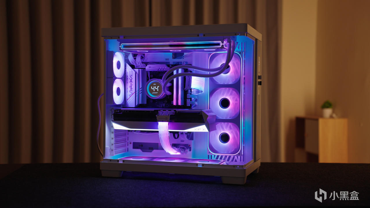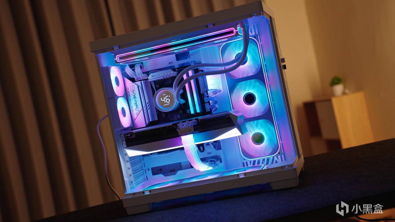 上机点亮之后效果更是加分,RGB 灯效通透,支持主板神光同步,整机氛围感一下就起来了,不浮夸但很有存在感。