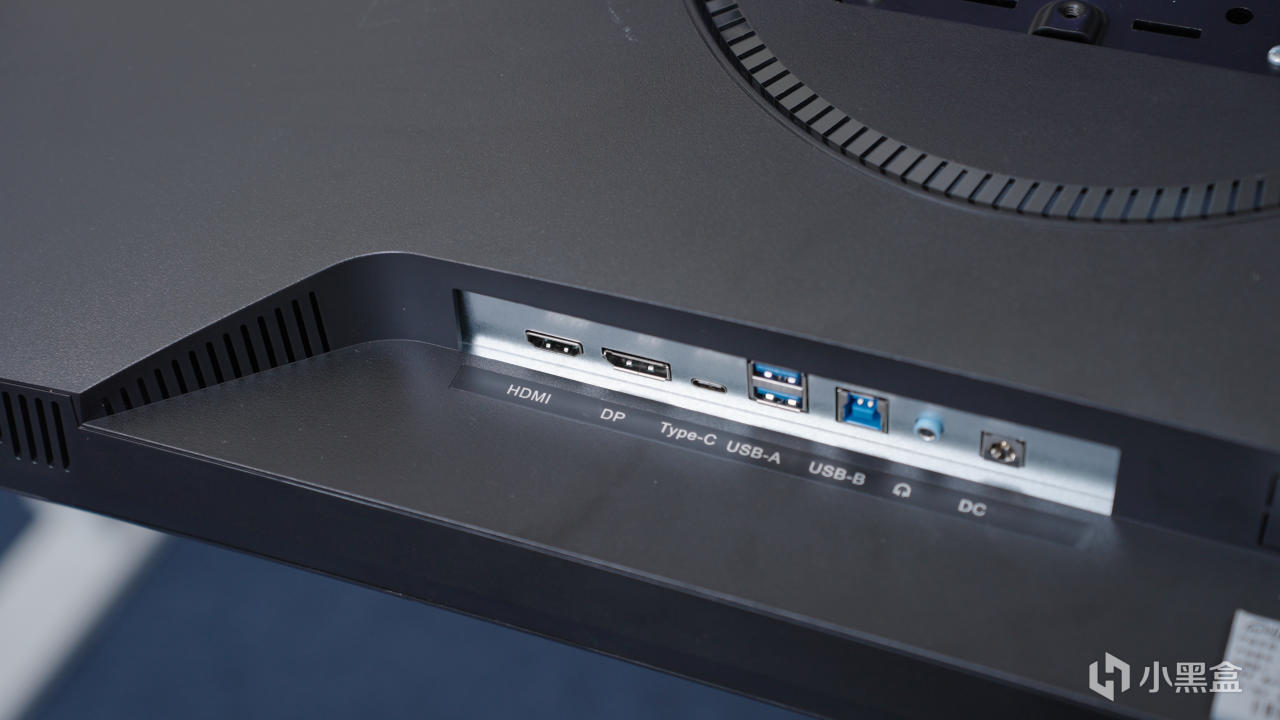 接口也挺丰富,两个HDMI,一个DP1.4,一个耳机接口,一个USB接口,虽然仅支持升级固件使用,但是也可以用来给屏幕挂灯之类的设备供电。