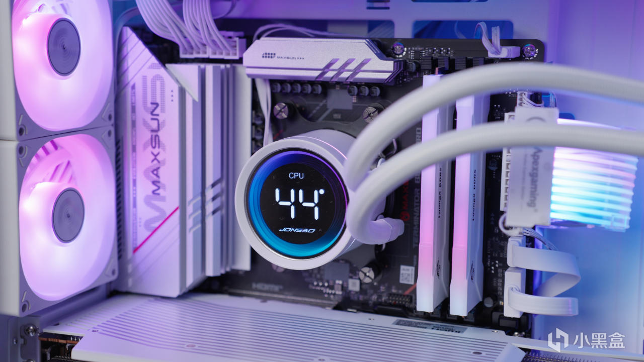 支持神光同步,水冷头带数显可以通过软件调节显示功能,风扇跟乔思伯的ZB-360风扇基本一致,所以整体的观感会更加协调,好看,所以建议机箱跟散热以及风扇选择同品牌会好一些。