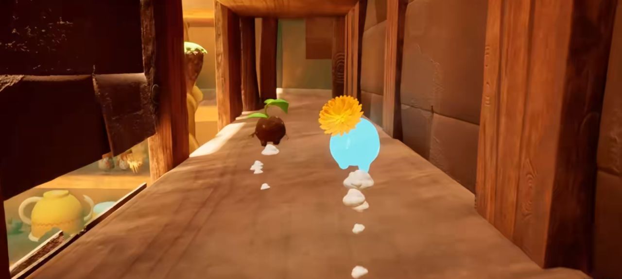 和小伙伴一个变身为种子,一个变身为水滴,一起合作拯救濒临灭绝的小木灵生物文明。