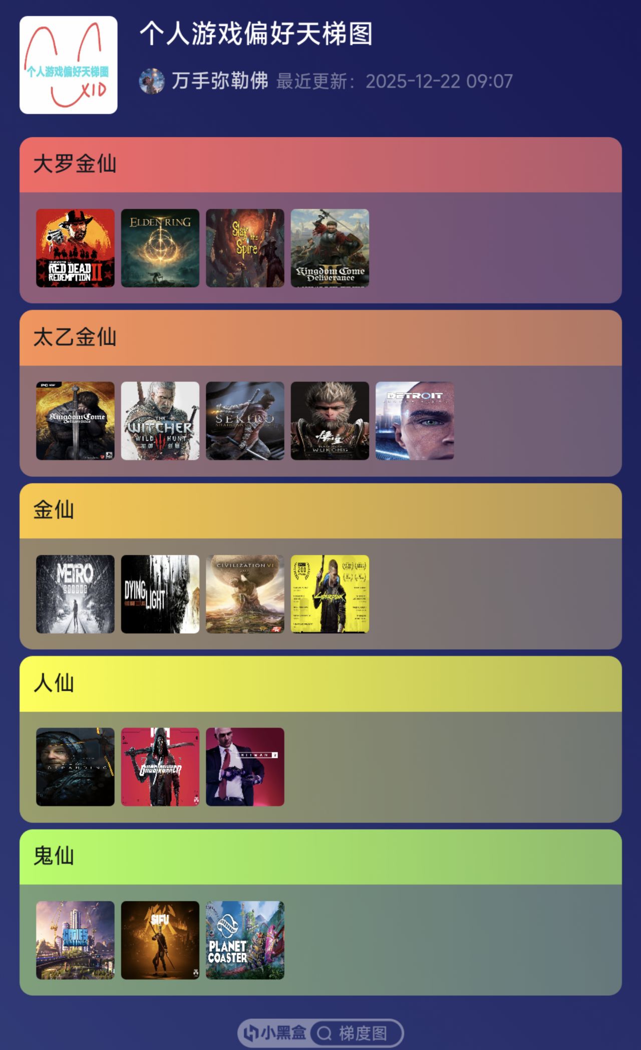 考虑很久还是给到人仙,听说后面剧情会越来越高超,期待一手,估计评价能上升。