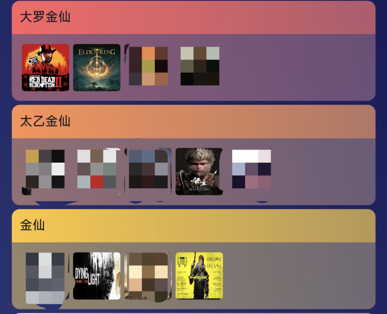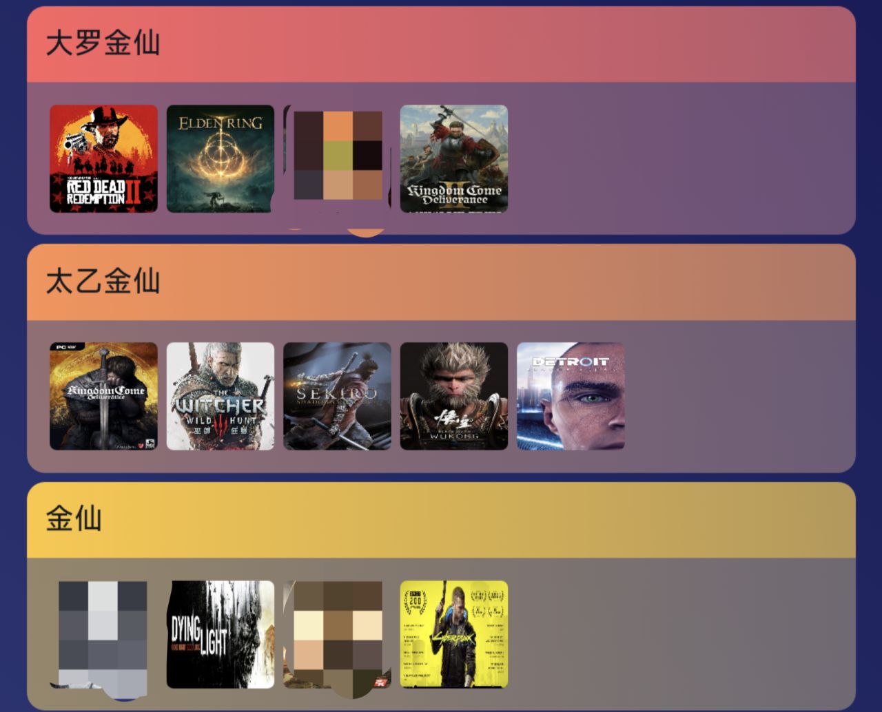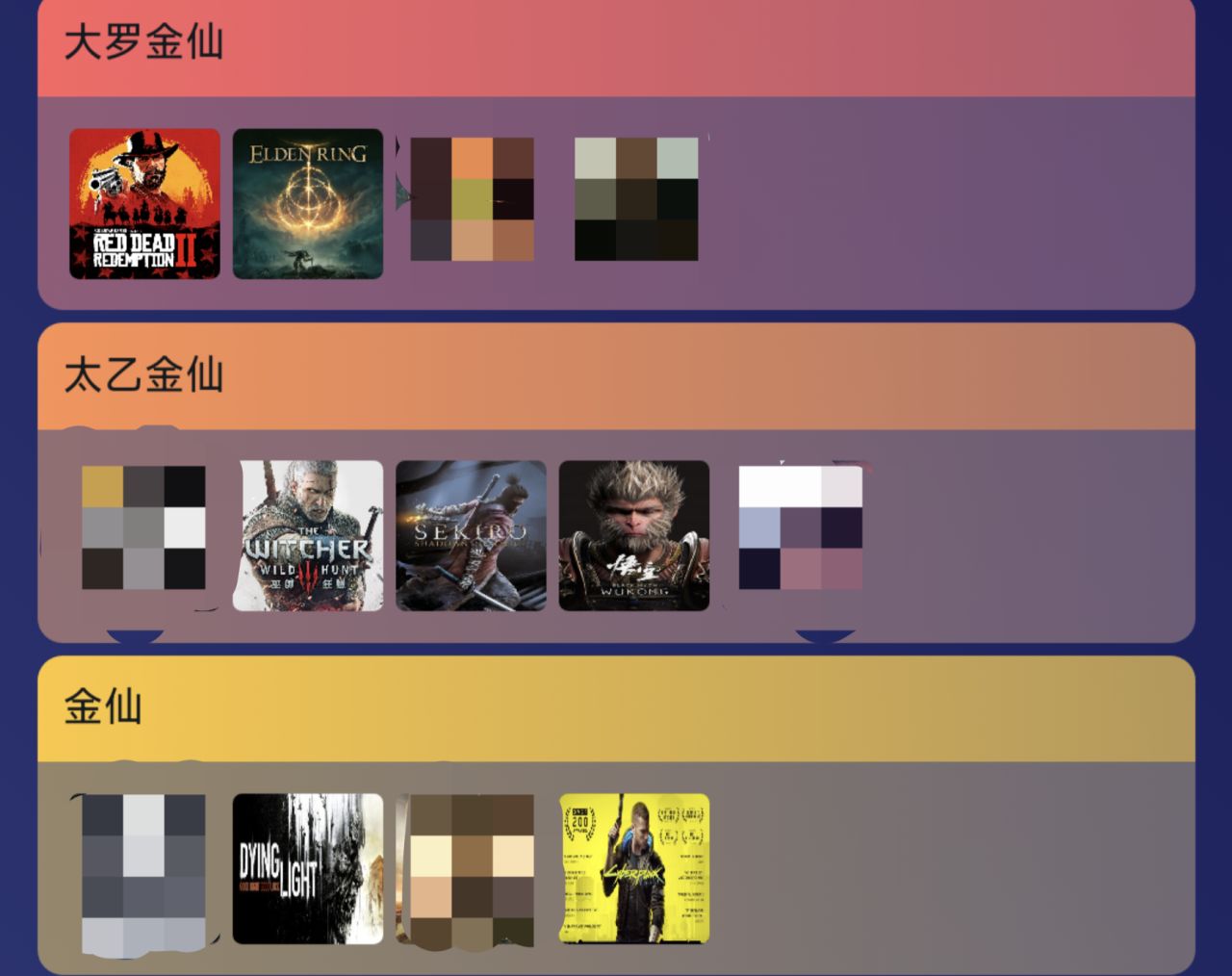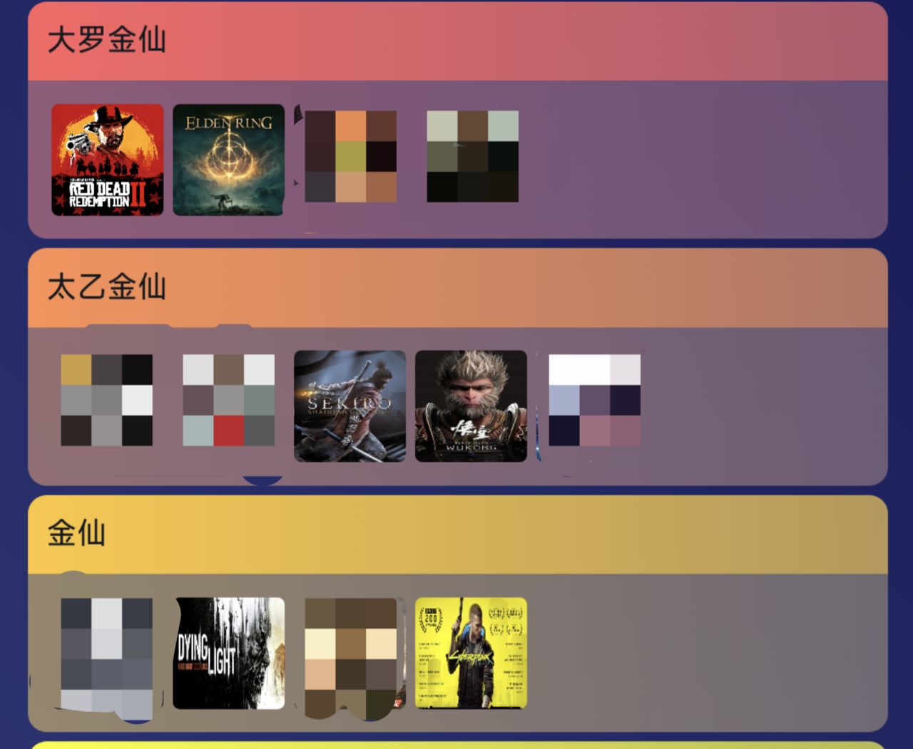 大罗金仙——太乙金仙——金仙——人仙——鬼仙