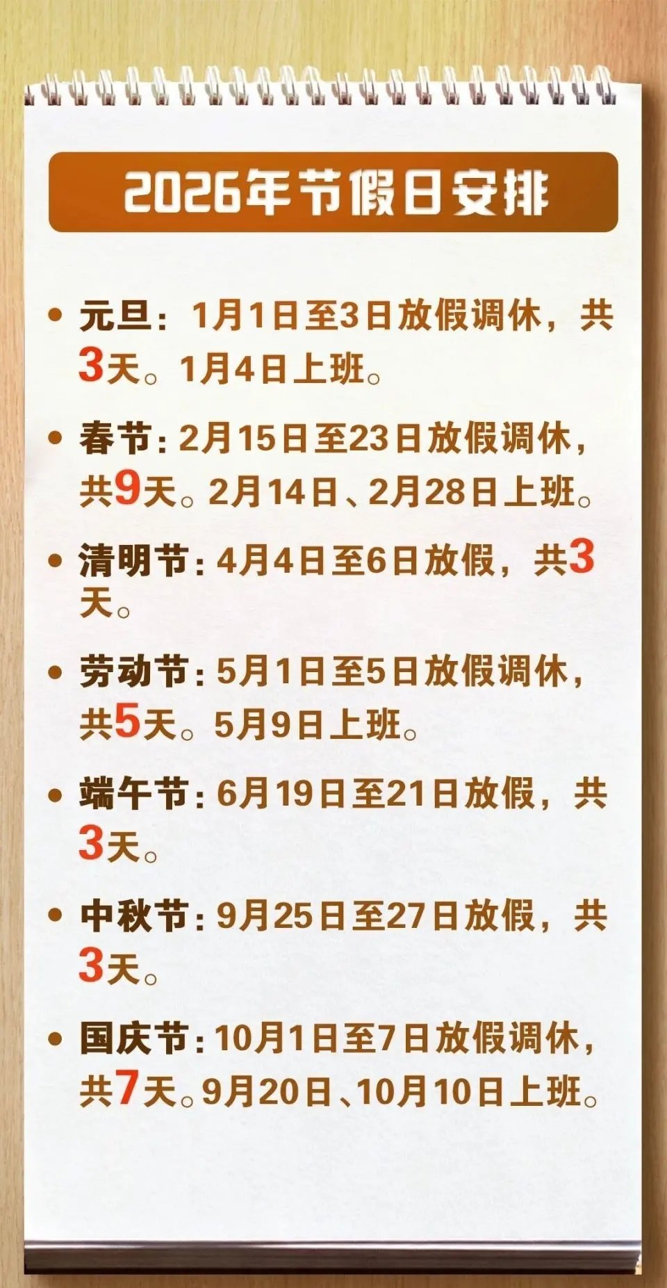 不过实际上,2025年的元旦和中秋节只有一天假,没有调休,只有今年2026年的春节假期从8天变成9天是实打实的多出来的。虽然表面上算出来的多了整整5天,本质上应该只多了一天。得了,一天假也是假,总比没有好。
