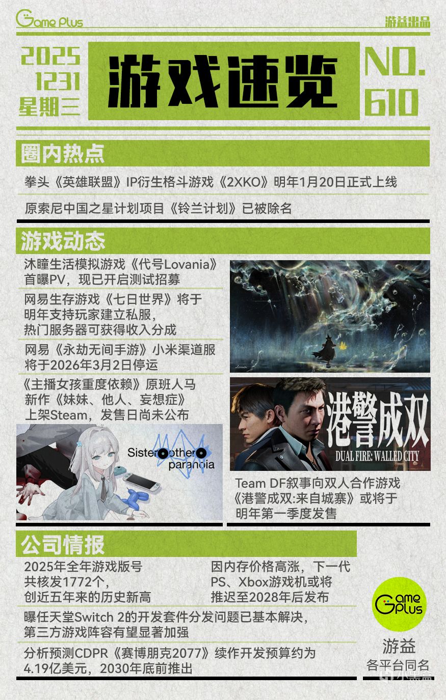 1.拳頭《英雄聯盟》IP衍生格鬥遊戲《2XKO》明年1月20日正式上線
