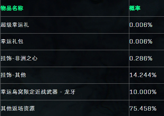 幸运礼包那更是不用说了,概率仅有 0.002%: