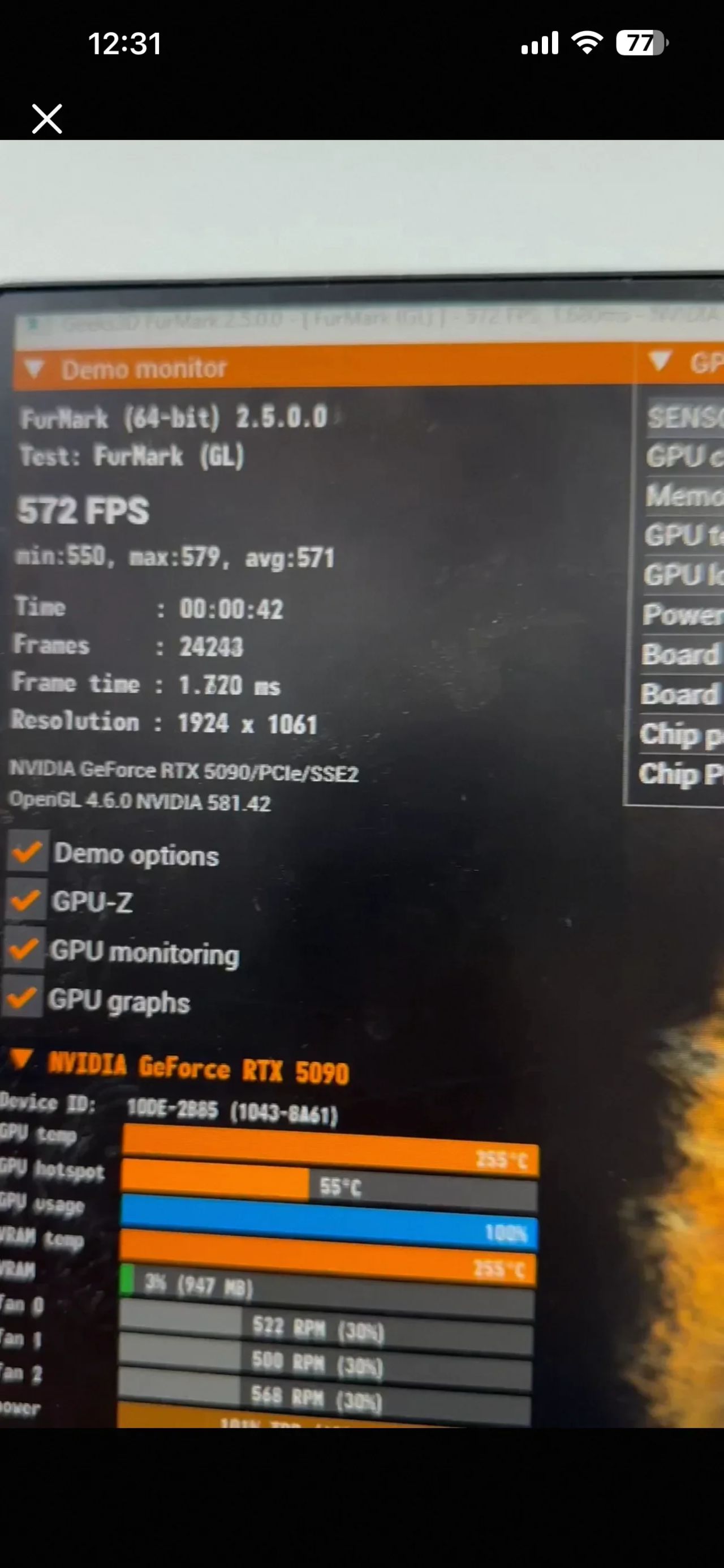 结果可以看到骇客相比5090oc夜神除了频率更高温度更低其它方面并没有太大区别,想要额外的性能就必须使用背插。