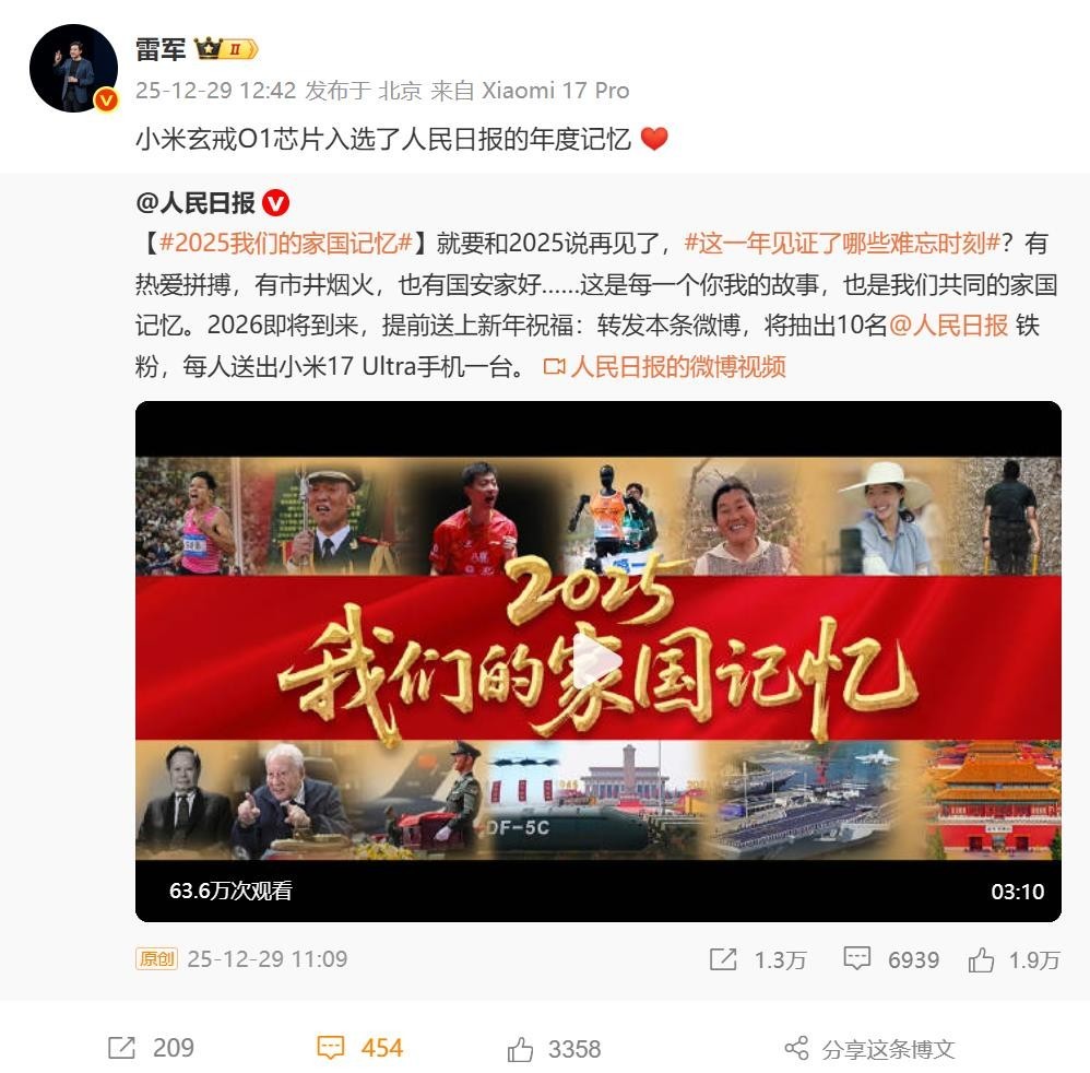 玄戒O1给雷军长脸了,给小米长脸了!12月29日,雷军发布微博称:玄戒O1芯片成功入选《人民日报》年度记忆。玄戒O1芯片作为小米自研的首款高端处理器,5025年5月发布,采用台积电3nm工艺,由小米15SPro首发。玄戒O1发布之后就饱受争议,争议的焦点不是性能,而是为什么有了自研的玄戒芯片后,小米自家的旗舰手机不大规模采用,反而继续采用高通芯片?