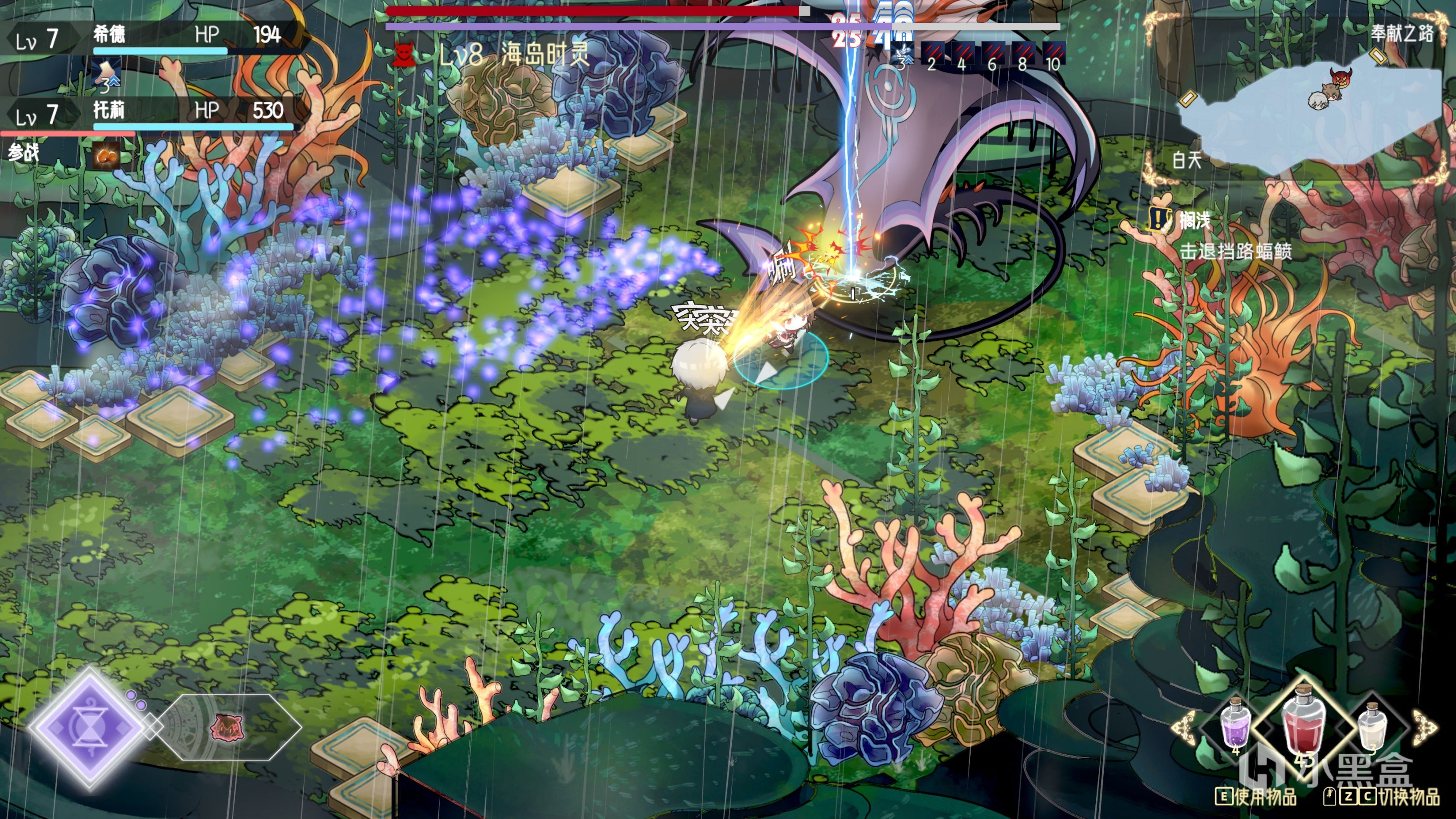 遊戲中迷宮也沒有太多設計可言,每一關的場景敵人較爲同質化,每場BOSS戰鬥設置兩個階段,階段差距不是很明顯,不管是小怪還是BOSS攻擊前搖幾乎看不到,讓整個戰鬥過程非常無趣。主角在戰鬥中被命中會有非常長的一個硬直,期間不能無敵,也沒法通過閃避等任何操作,如果再次受擊就會一直僵直,這是隻能靠血瓶硬嗑藥,整個戰鬥體驗非常不流暢。遊戲後期,武器強化滿了後,BOSS一般都是十幾秒結束了,也許這是爲了照顧新手(手殘)玩家吧。