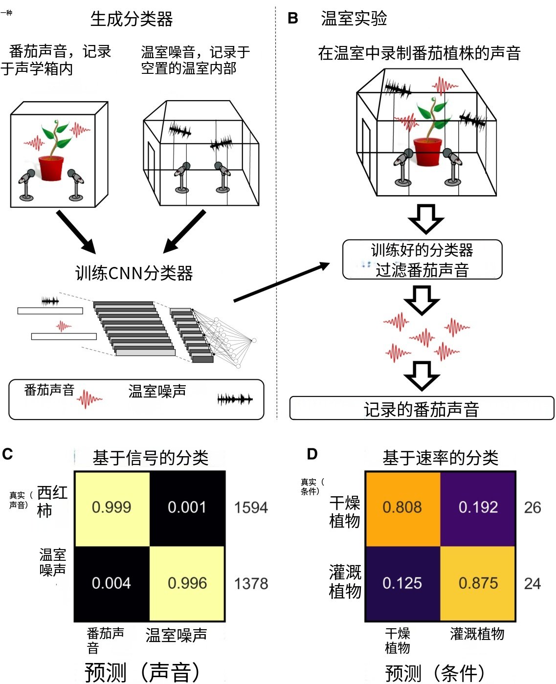 然后,他们训练了一个机器学习算法来区分未受胁迫的植物、茎秆被剪除的植物和脱水的植物发出的声音。