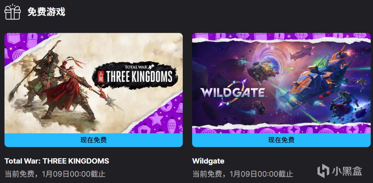 EPIC圣诞连送的最后一弹为《全面战争:三国》《无主星渊》,领取时间1.2-1.9。