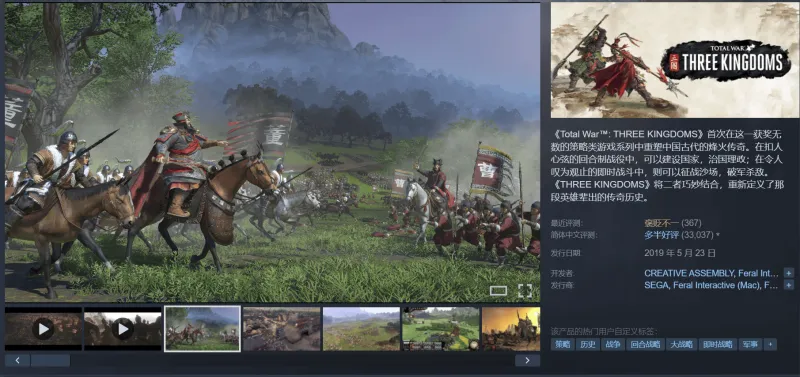 《全面战争:三国》策略类游戏系列中重塑中国古代的烽火传奇,在扣人心弦的回合制战役中,可以建设国家,治国理政;在令人叹为观止的即时战斗中,则可以征战沙场,破军杀敌。