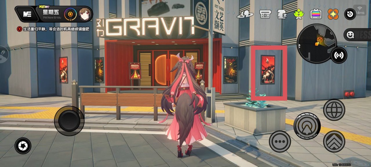 回头直走,从左手边斑马线过马路,继续直走,到电影院门口右侧,查看墙上的红色海报。