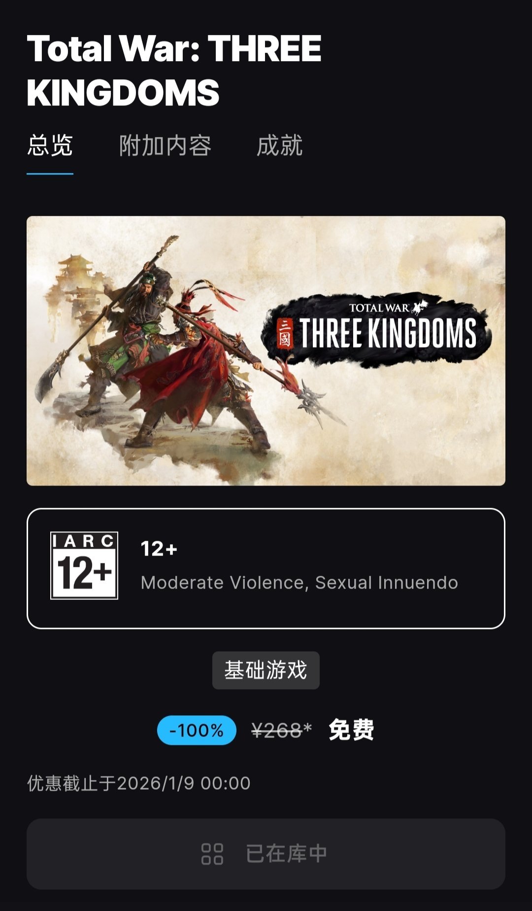 游戏我已经入库啦,游戏限时一周时间限时免费领取,截止日期是下周四晚上11.59,小伙伴们记得领取哦