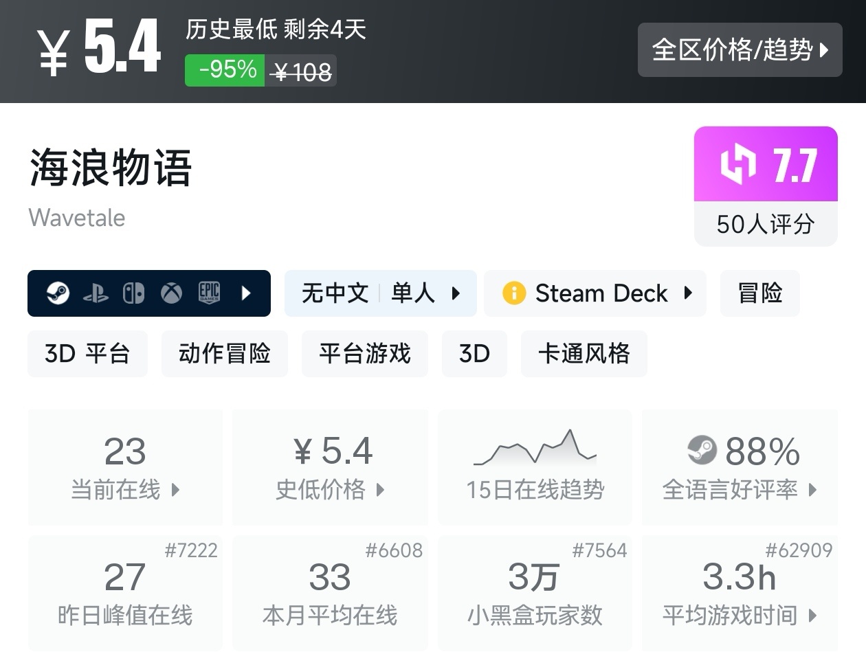 以上就是这次的折扣汇总,给Steam翻了个底朝天才找到这11款0.5折的游戏,只能说用了很长时间才找到