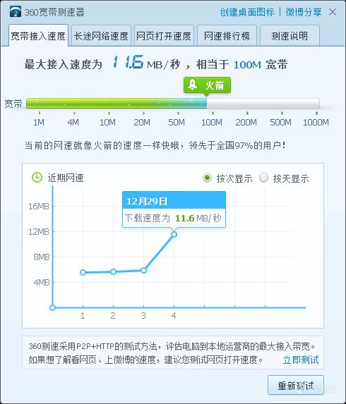 現在網頁端的中科大測速網、SpeedTest和手機端的全球網測等正常的測速平臺,都會用Mbps作爲單位,但是電腦端的360寬帶測速器倒是會用MBps作爲單位,就有可能給用戶造成困擾。