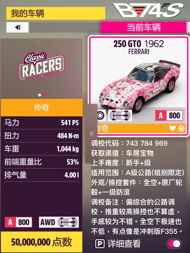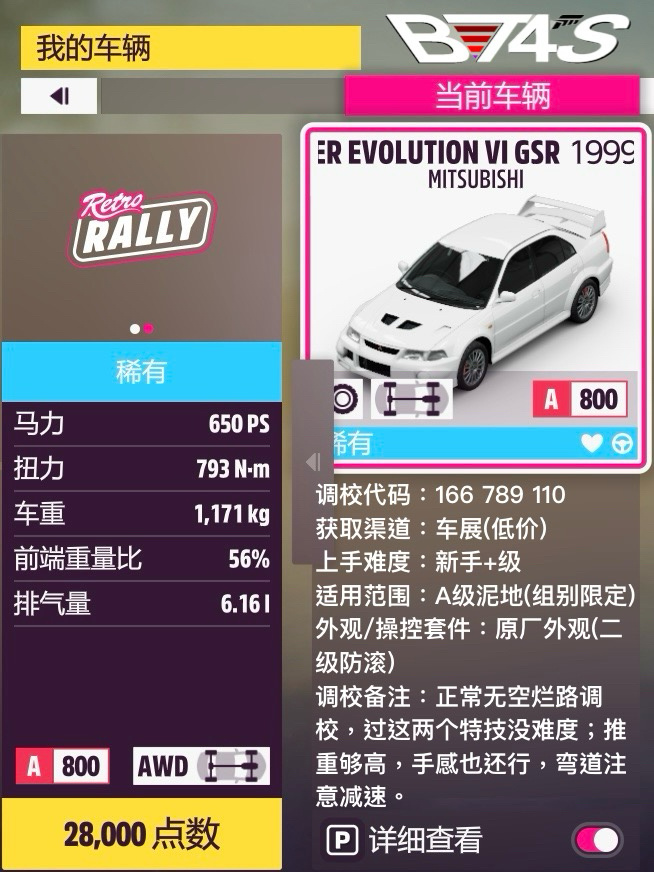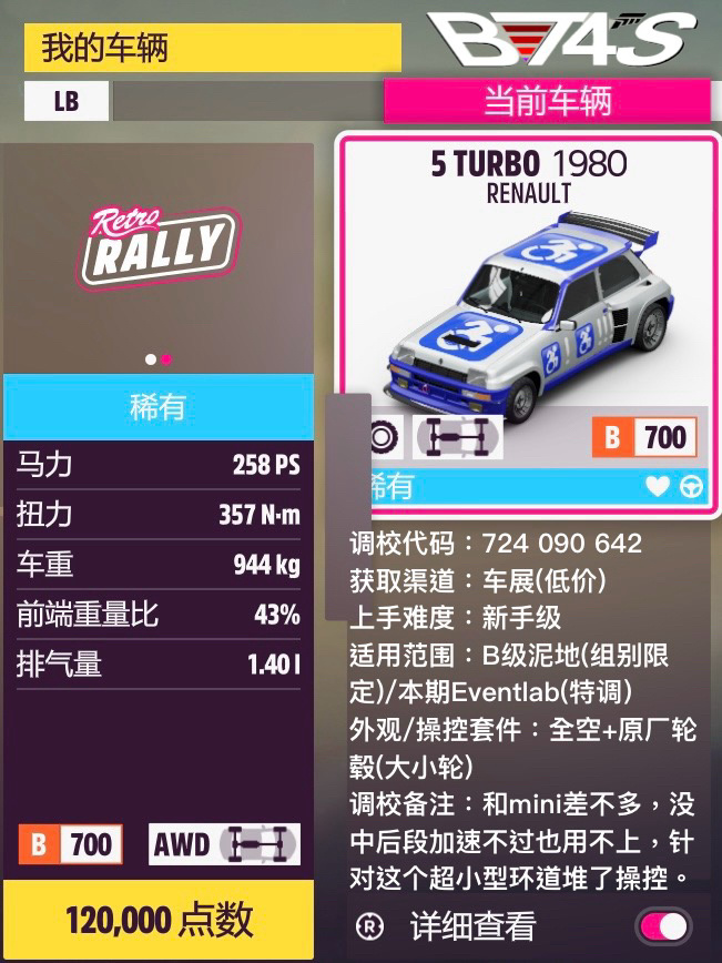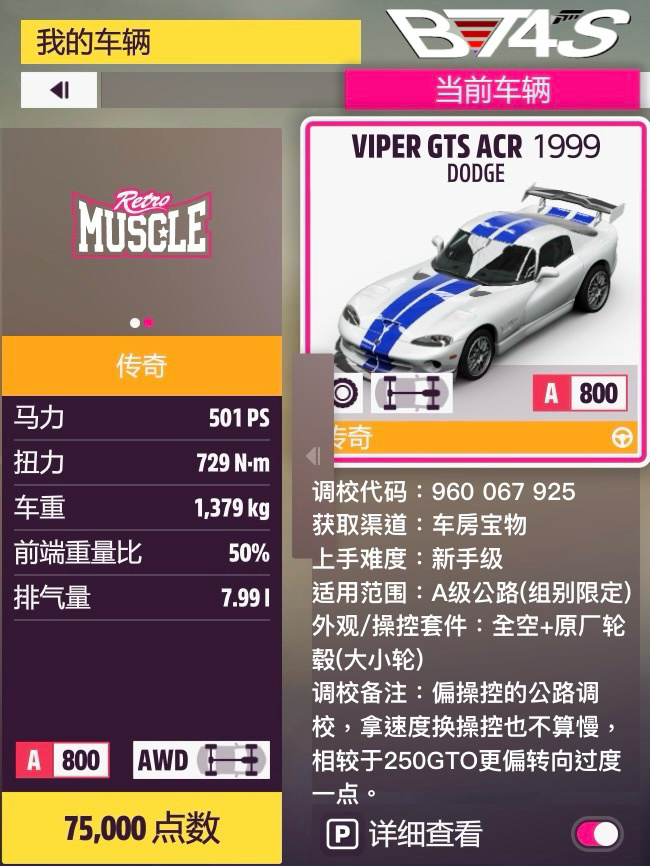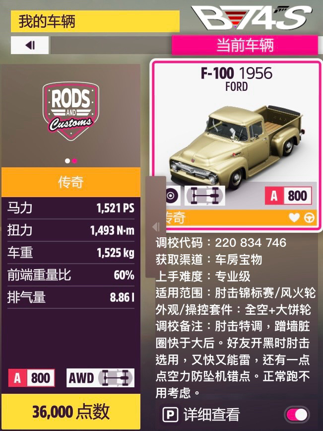 這次在車型一覽圖上加了點內容,正文可以少寫點了。物理“有點意思”的小車,性能分壓了個666分,反正別的性能也用不太上,乾脆搞得好玩點、有挑戰性點了。