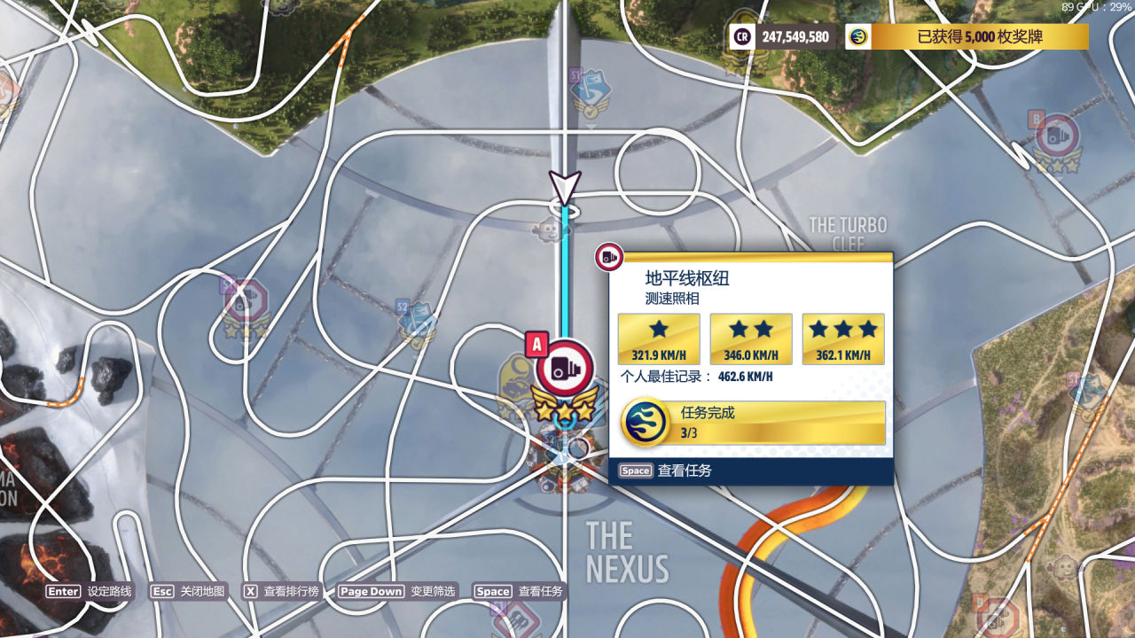 要求用任意電車在任意測速區間累計達成6星,大致高速車如上圖,選輛自己有的或沿用之前的Evija。推薦區間和上面周馬拉松的一致。寶箱位置如下,在體育場迷宮內。
