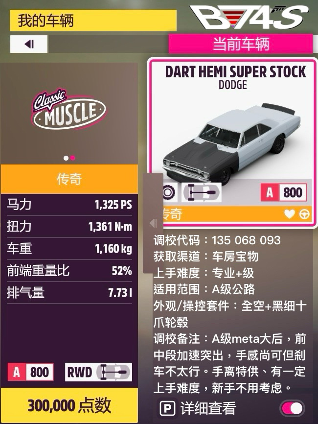 又是一個可以直接沿用的重複組別,和上個月夏季風火輪錦標賽的內容一致,不過圖換成了三場純鋪裝,沒必要換調校了。將近2000匹的野馬夠“肌肉”了吧,之前測下來算組別內斷檔的快,別的基本沒必要考慮了。至於怎麼蹭牆最快就不多說了,自行研究。