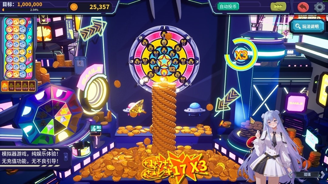 这款游戏是非常罕见的推币机游戏,游戏当中还融合了一些剧情挑战,虽然在推币机的数值管理方面并没有做的非常优秀,但是依旧给我们玩家带来了非常新颖的体验。