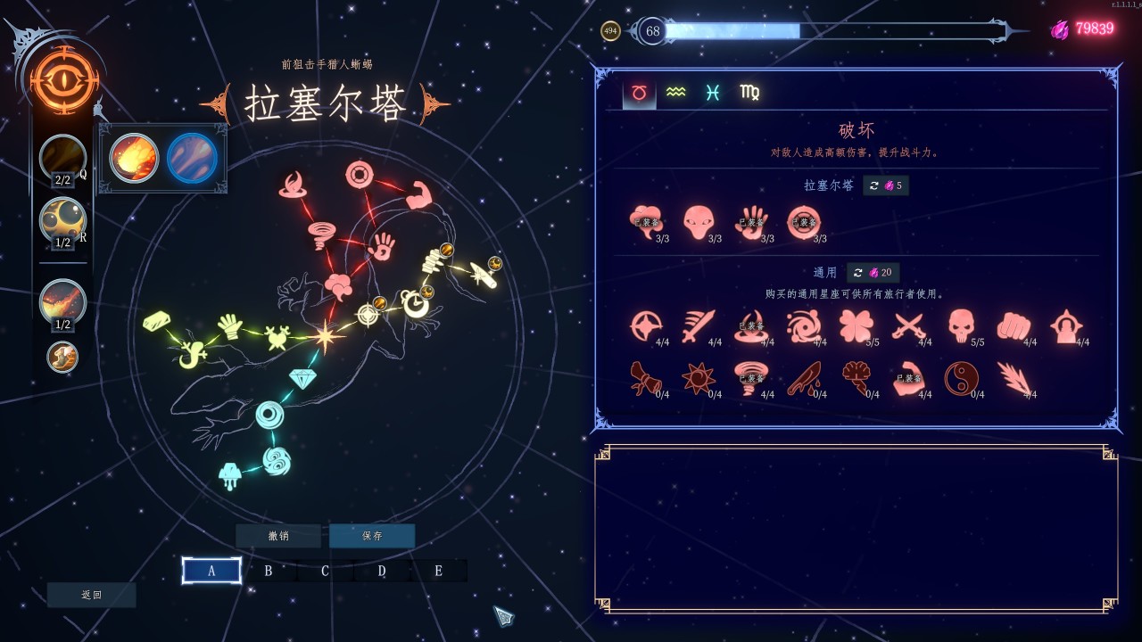 《梦之形》中的Rogue构筑局外权重占比较大,除了解锁额外的一套技能组,提升英雄熟练度还能解锁不同的星座分支强化与槽位。