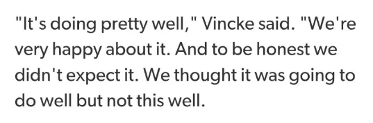 “相當不錯,”斯溫·文克說,“我們對此非常高興。說實話,這超出了我們的預期,我們原以爲它會湊合,但沒想到這麼好。