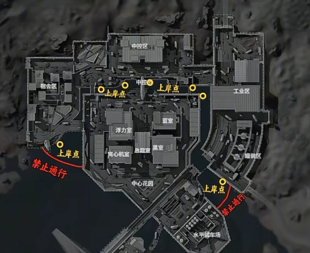 可以看到圍繞核心區一整圈的水都是可以下的,但是上岸點是有限制的,沒法直接下水然後游到對面直接上岸。但也提供了更多的打法可能性和玩家位置的不確定性,花點時間下水游泳就能做到神出鬼沒了!