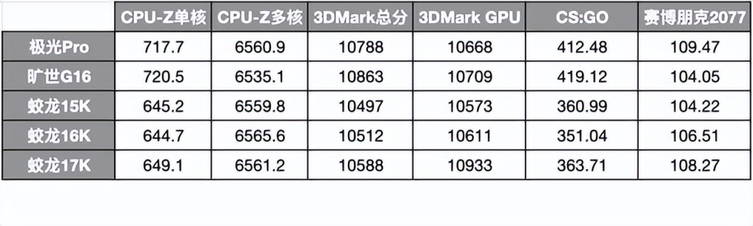 单单从参数上看,蛟龙15K / 16K / 17K均采用R7-7735H——R7-6800H的能效优化版,CPU性能比肩极光Pro、旷世G16的i7-12650H,但DDR5 4800内存规格占优;屏幕方面,5999元同价产品之中2.5K 16:10的蛟龙16K最佳,两款6199元产品里旷世G16 240Hz刷新率与蛟龙16K 100%P3色域,互有胜负令人难以抉择;WiFi网络方面,Intel AX101(Wi-Fi6 1T1R 600Mbps)不敌AMD RZ608(WiFi6E 2T2R 1.2Gbps)。