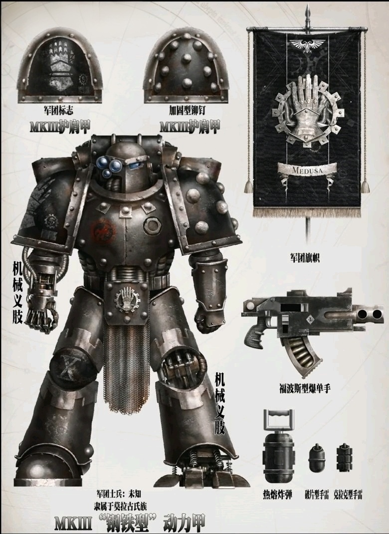 从美杜莎星球的工业废墟到伊斯塔万五号的血色战场,从大远征的辉煌征程到荷鲁斯之乱后的涅槃重生,钢铁之手的历史始终镌刻着"血肉羸弱,钢铁永恒"的核心信念,成为人类帝国在黑暗时代中一道坚硬而冰冷的钢铁屏障。