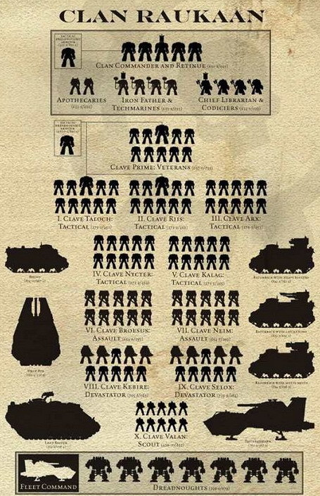 钢铁之手的核心组织单位是"部落连"(Clan Company),十个部落连构成了战团的主体力量,其建制直接传承自美杜莎星球的十个主要氏族。