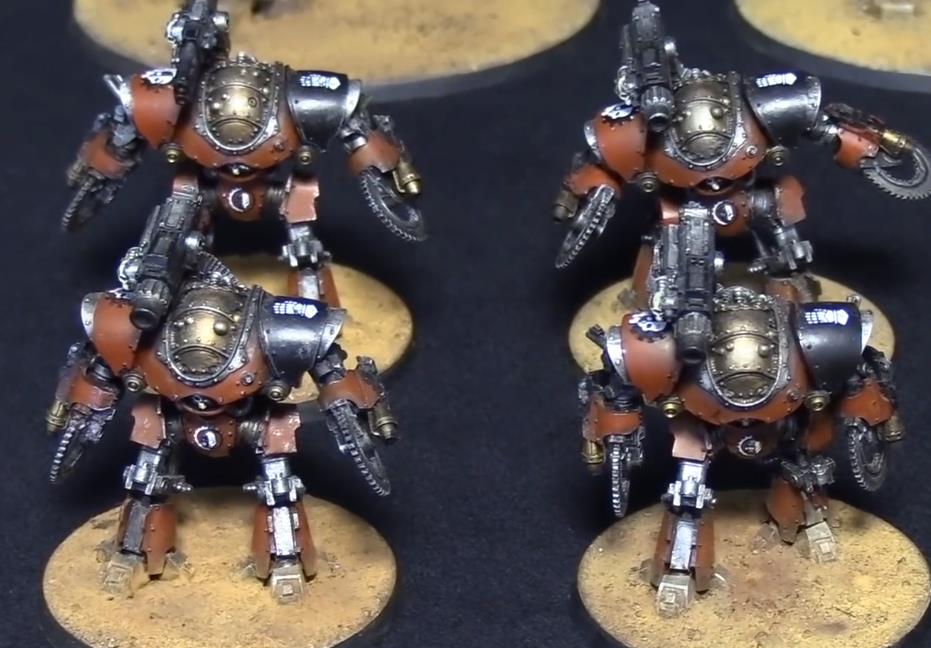 由于与机械神教的紧密联系,战团得以优先获得最先进的武器与改造技术,他们的装备普遍具有更强的火力与更高的防护性能——普罗特斯型兰德袭击者(Proteus-pattern Land Raider)