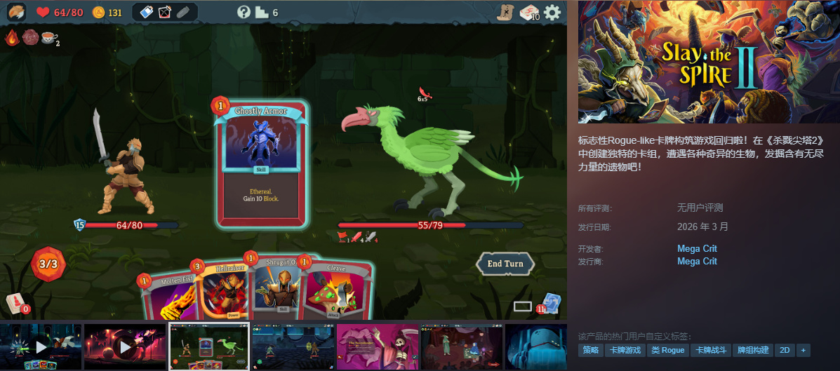 肉鸽爬塔游戏永远绕不开的作品,第一部作品就已经相当上头,而且冬促也是一折。第二部画面全新升级,疑似加入了新机制,最重要的,就是3月就能玩到了!