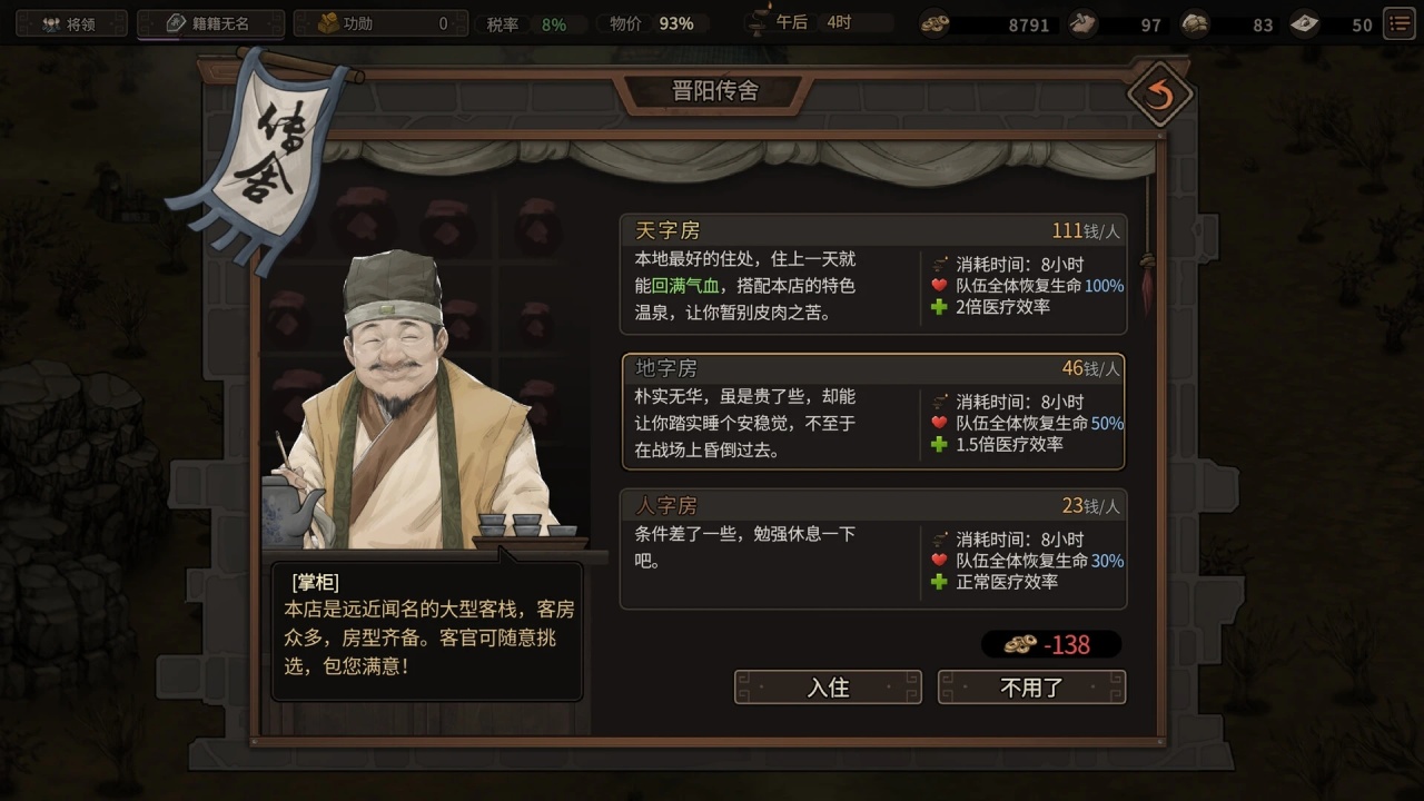 游戏剧情事件还有重复性,比如一开始我去找司马胭,然后被打败,然后被赶走,后续再去还是会触发到同样的剧情,这种感觉有些怪...。