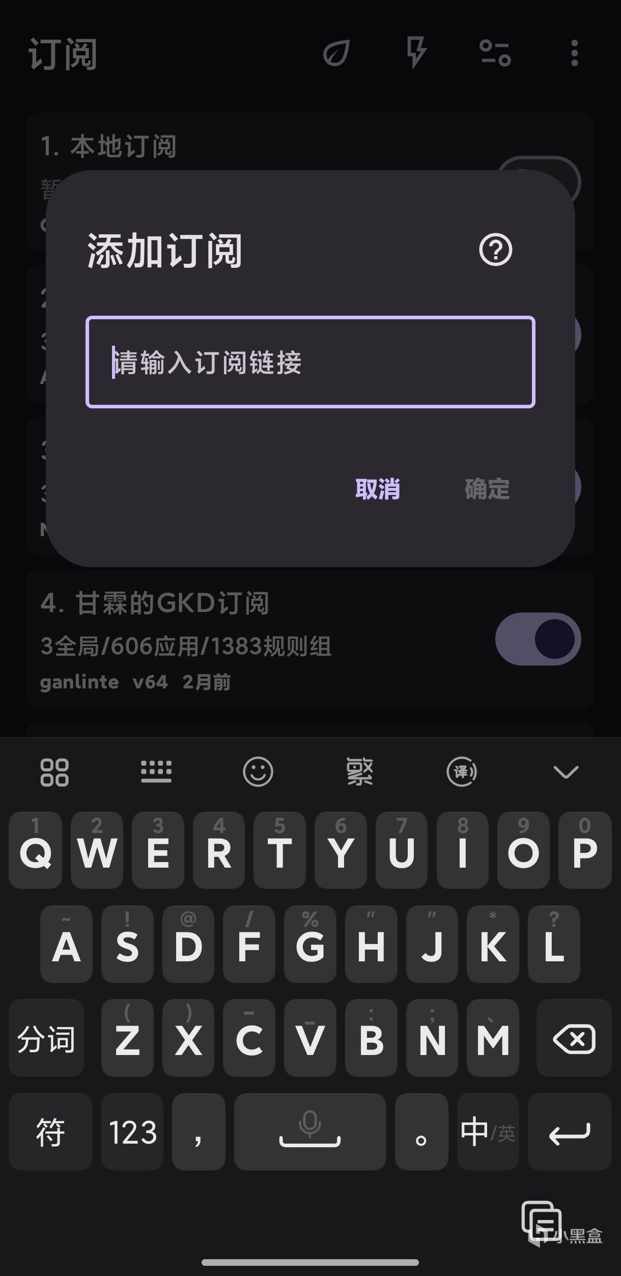 然后在“订阅”栏点击右下角加号粘贴链接即可完成添加。