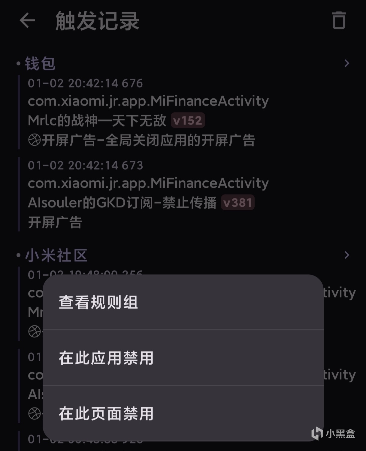 如果出现规则错误跳过重要内容的情况,可以去首页的触发记录中单独在此页面或者应用禁用。