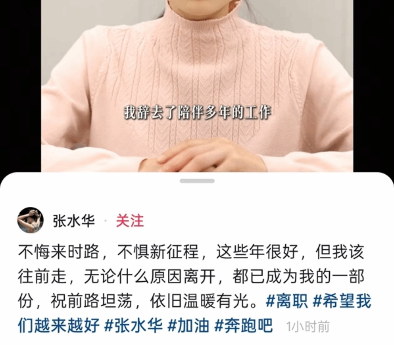 张水华表示,离开不代表结束而是新的开始,未来将带着奔跑的勇气继续陪伴大家。其丈夫王岢也已对外表示支持妻子的决定。