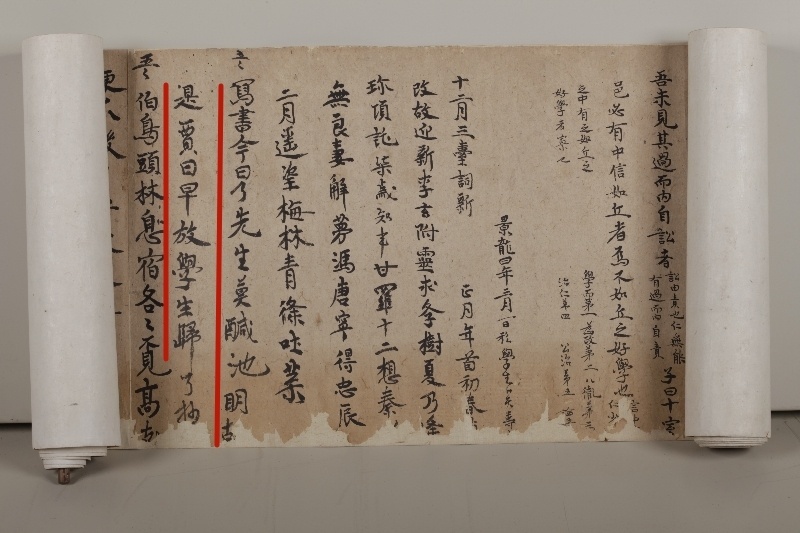 在这份5米多长的卷轴上,他用稚嫩的书法誊抄着《论语郑玄注》和古代少儿认字读物《千字文》这两本书的几个章节。或许是当时卜天寿年龄太小,抄卷中有不少错别字。